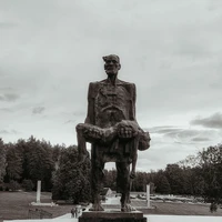 Мемориальный комплекс Хатынь. 22 марта 1943 года деревня Хатынь была сожжена вместе с 149 жителями. Через четверть века на её месте открыли грандиозный памятник. Вы рассмотрите бронзовую скульптуру отца с убитым ребёнком на руках и услышите монотонные удары похоронных колоколов. Также увидите стену Скорби и чёрные обелиски печных труб, построенные на месте уничтоженных домов.